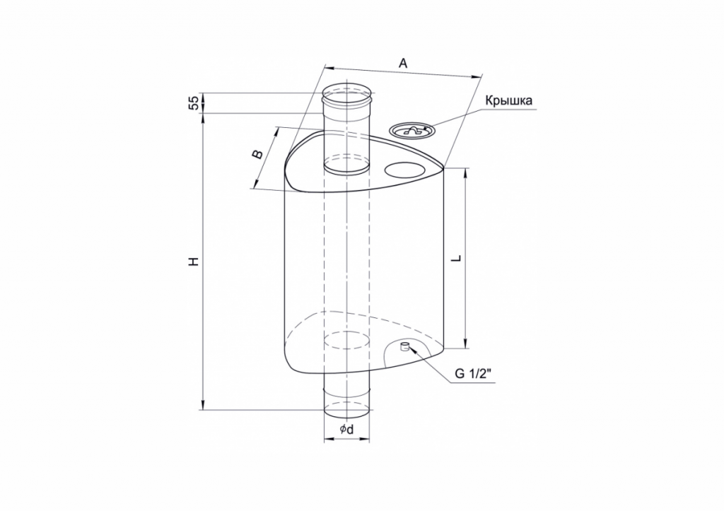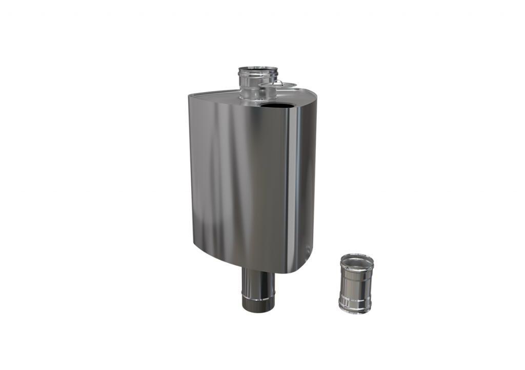 Конструкция бака состоит из стального корпуса, который закреплён на трубе-дымоходе.