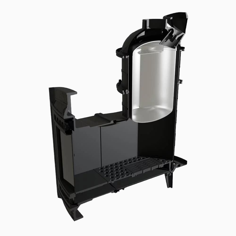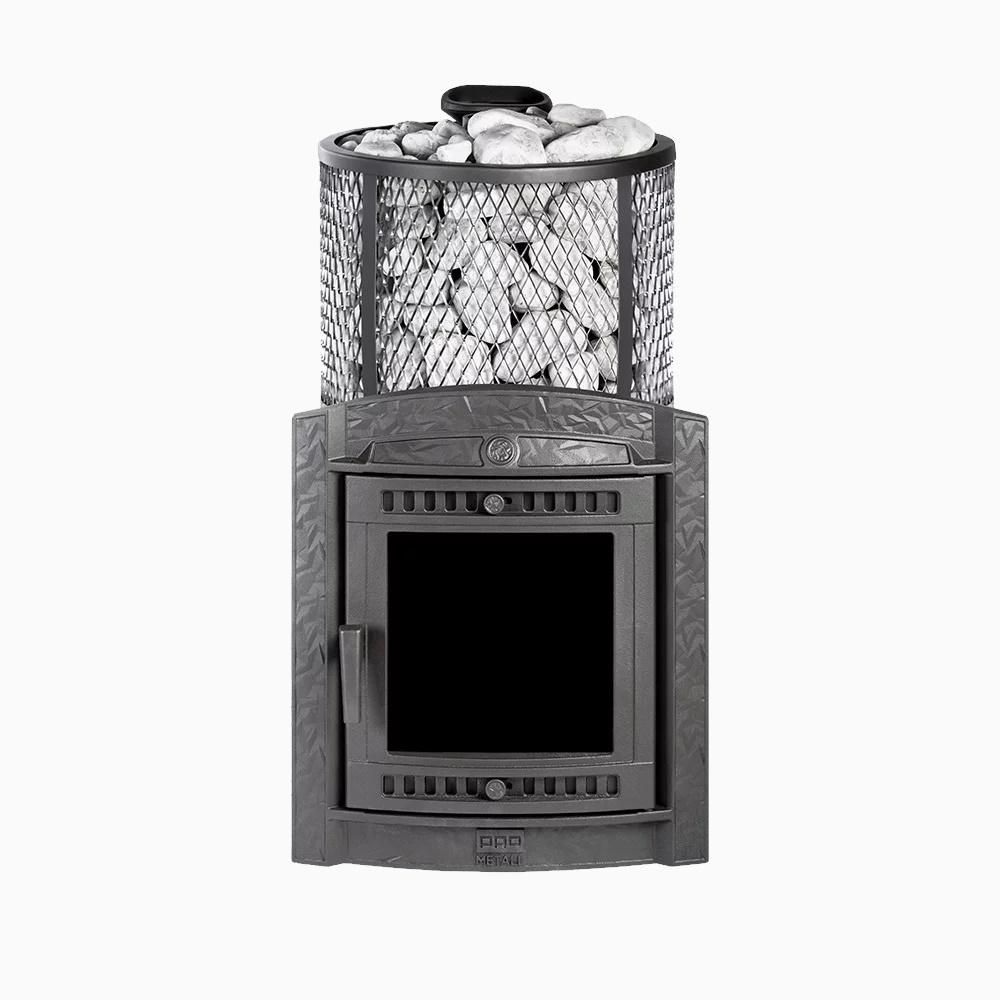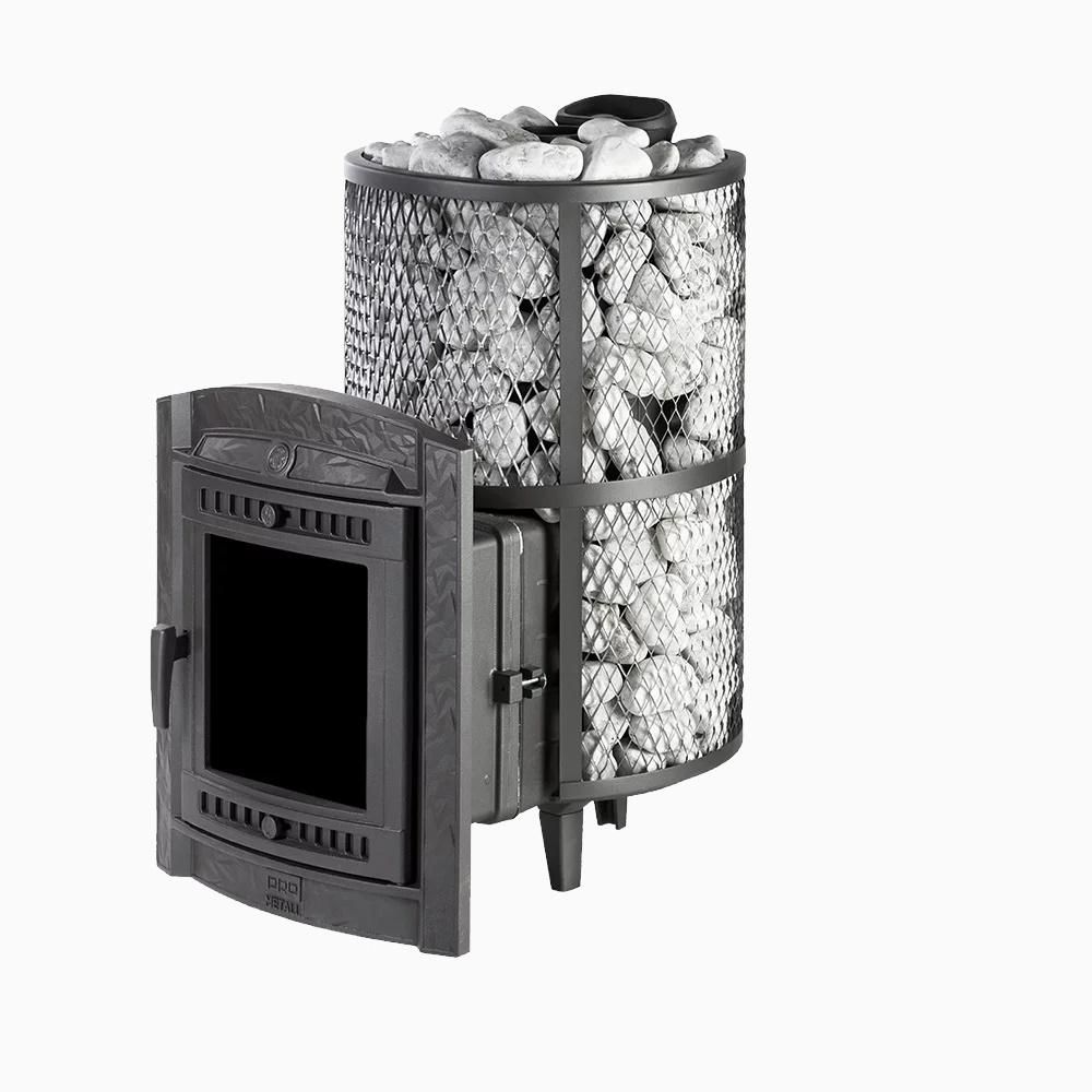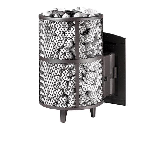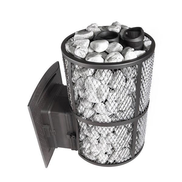 Модель с увеличенной каменкой и повышенной производительностью. Кожух печи изготовлен в виде сетки из нержавеющей стали и полностью заполняется природными камнями, обеспечивая высокую динамику нагрева парильного помещения.