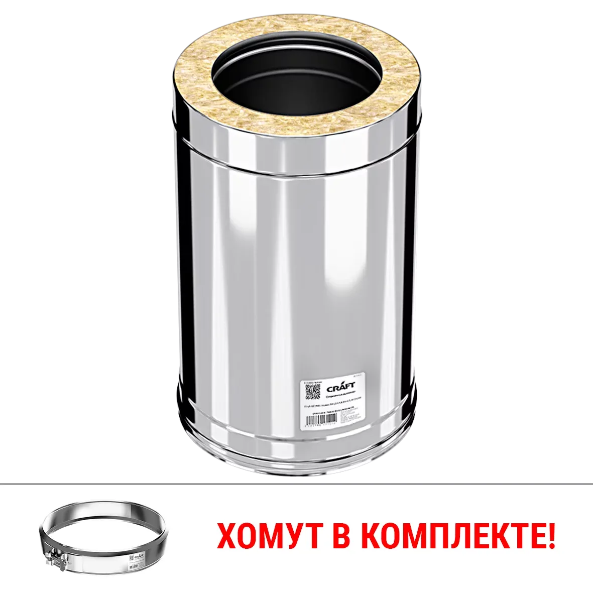 Утепленный элемент предназначен для отвода дымовых газов на неотапливаемых прямолинейных участках дымохода. Важно! За счет раструба полезная длина элемента на 60 мм меньше, чем номинальная. Внутренний контур изготовлен из коррозионностойкой нержавеющей стали AISI 316L толщиной 0,5 мм. Внешний контур выполнен из аустенитной стали AISI 304 толщиной 0,5 мм. Теплоизоляция - из базальтовой ваты, это позволяет свести к минимуму образование конденсата и будет способствовать быстрому прогреву дымоходного канала и выходу системы в рабочий режим. Холодная формовка раструбного соединения с идеальной геометрией и газоплотностью. Лазерная сварка встык обеспечивает тонкий и прочный шов, увеличивая в разы срок эксплуатации. Рабочая температура до 450°С.
