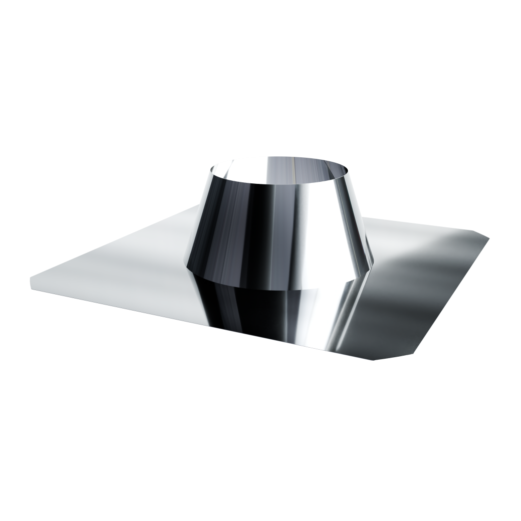 Элемент предназначен для прохода дымохода через крышу. Плоская часть крышной разделки изготавливается из алюминия. Конусная часть изготавливается из коррозионностойкой нержавеющей стали AISI 304. Толщина стенки 0,5 мм.