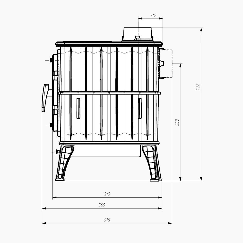 Диаметр дымохода 115мм (внутренний) / 130мм (внешний)